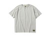 裾にはオリジナルメッセージタグを配置。さりげないディテールが、シンプルな一枚に個性を添えます。