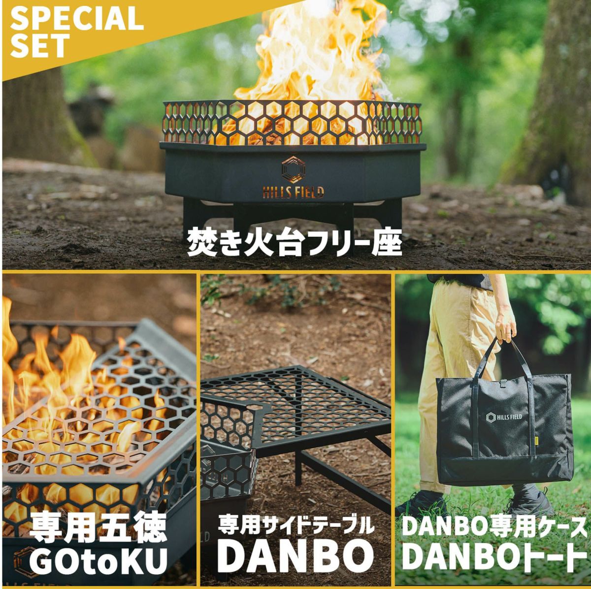 他の画像を見る 【予約商品:全商品お届け予定26年2月頃】 焚き火台フリー座+専用五徳GOtoKU+専用サイドテーブルDANBO+DANBO専用ケースセット NEW 送料無料 予約商品 クーポン対象外 ¥ 63,540 ¥ 58,800 税込 販売期間 2025/10/16 9:00 〜 2026/02/28 23:59 カートに入れる お気に入りに登録する (0)